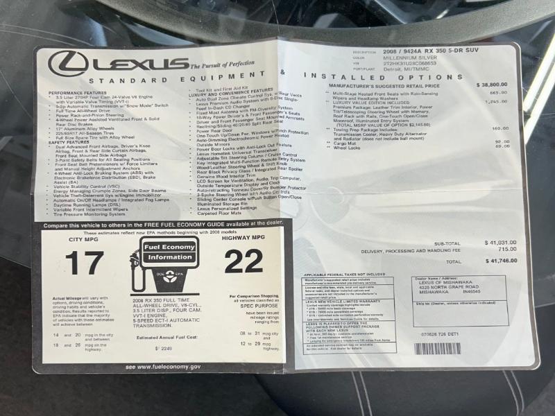 Vehicle Inquiry for 2008 Lexus RX 350 AWD